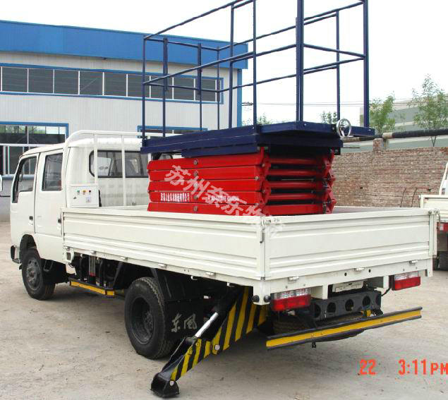 汽车载式液压升降平台是由升降台和汽车配套改装而成的。它接取汽车引擎动力,实现升降台的升降功能。适用于大 流动量的高空作业。